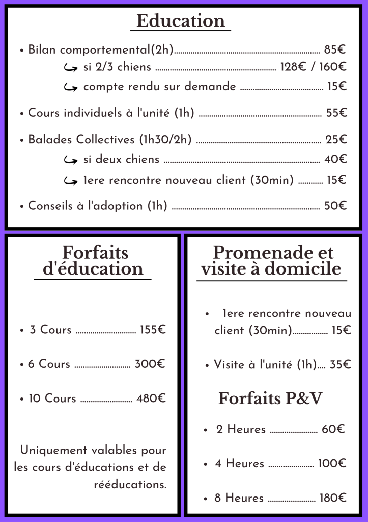 Pour tout détails, se référer à la page Prestations